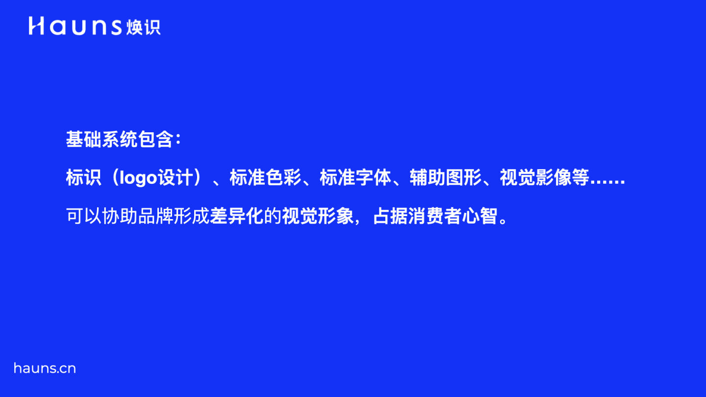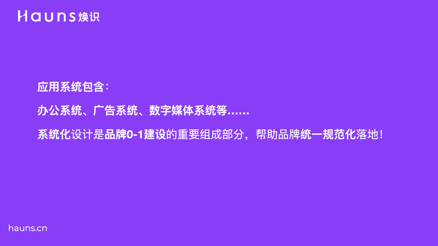 Hauns煥識是一家創意策略思考導入型的品牌成長咨詢公司,我們擁有寬闊的國際視野,以創意策略性思維導入品牌內部,通過調研分析、策略定位、品牌設計等專業核心能力,構建由內而外完整的品牌體系,用專業的服務為品牌注入活力,幫助您的企業實現真正地品牌成長,煥然一新品牌識別形象!